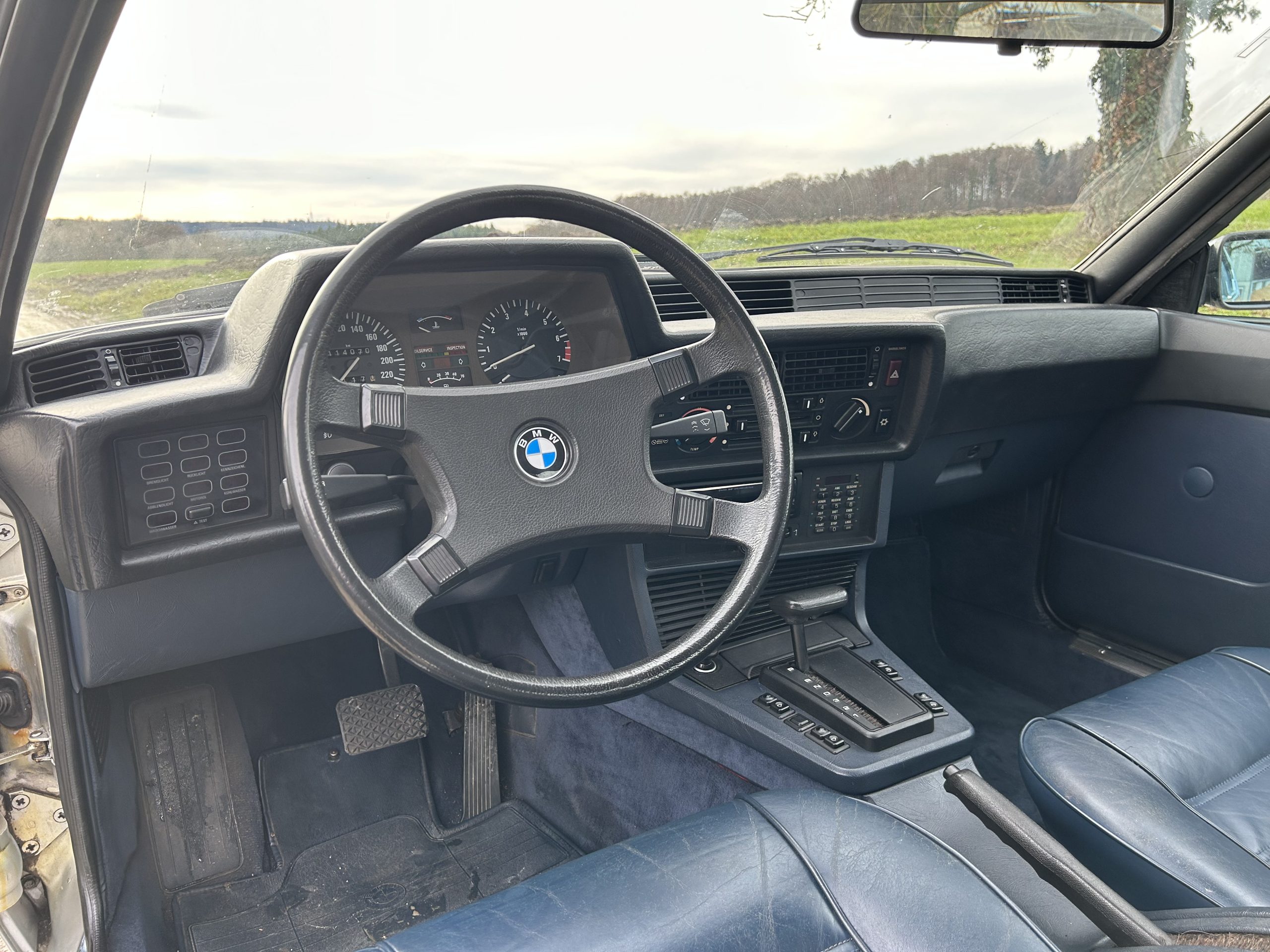 Das Fahrzeug ist in einem ausserordentlich gutem Originalzustand. Neue Originalbereifung auf den originalen BMW Alufelgen. Innenraum blaues Leder in sehr gutem Zustand, Himmel und Schiebedach sehr schön, Schiebedach voll funktionsfähig und geräuschlos, alle Bedienelemente und Armaturen in Funktion und in Ordnung, Armaturenbrett neu in Originalmaterial und Farbe bezogen, keine Risse.